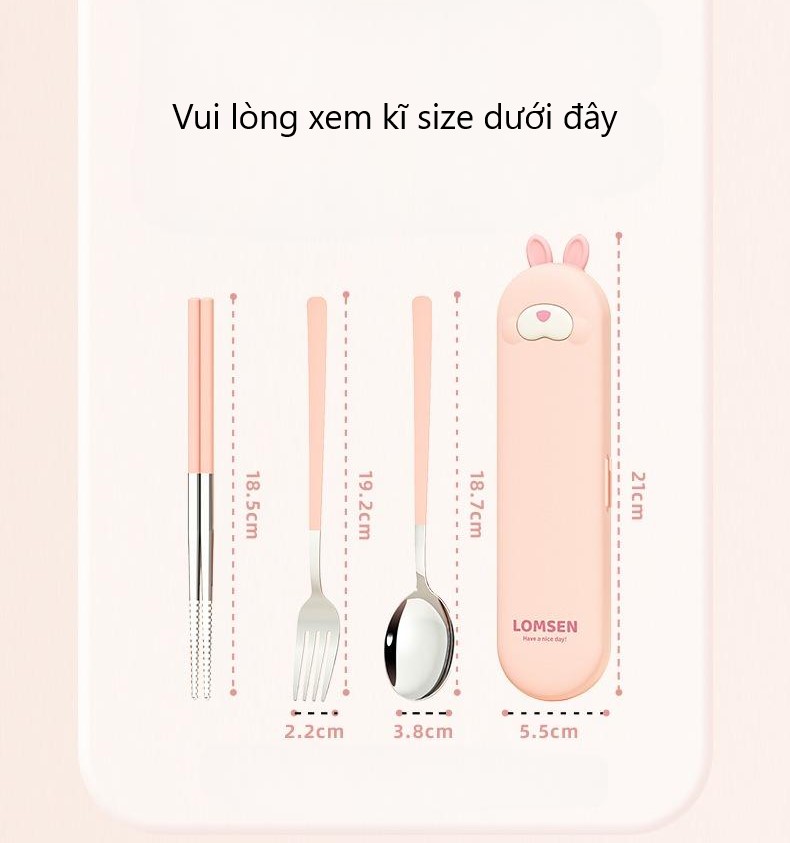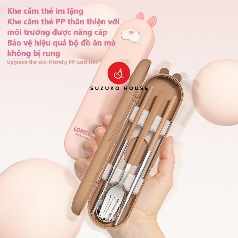 Bộ muỗng thìa văn phòng gấu thỏ, set hộp đũa nĩa dễ thương cá nhân mini Inox 304 cao cấp có nắp đậy cute TM20