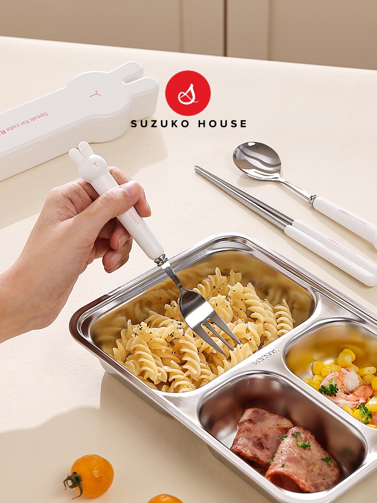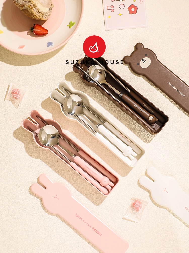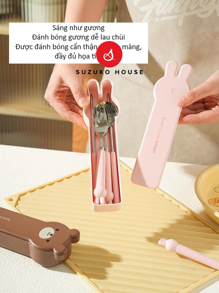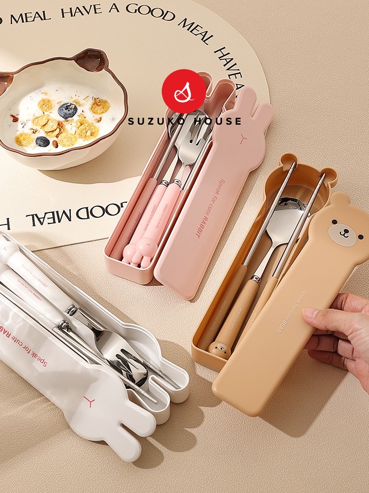 Bộ thìa đũa cute Tai Thỏ SUZUKO HOUSE, Hộp set inox 304 thìa đũa muỗng nĩa cho bé, cá nhân văn phòng TM10