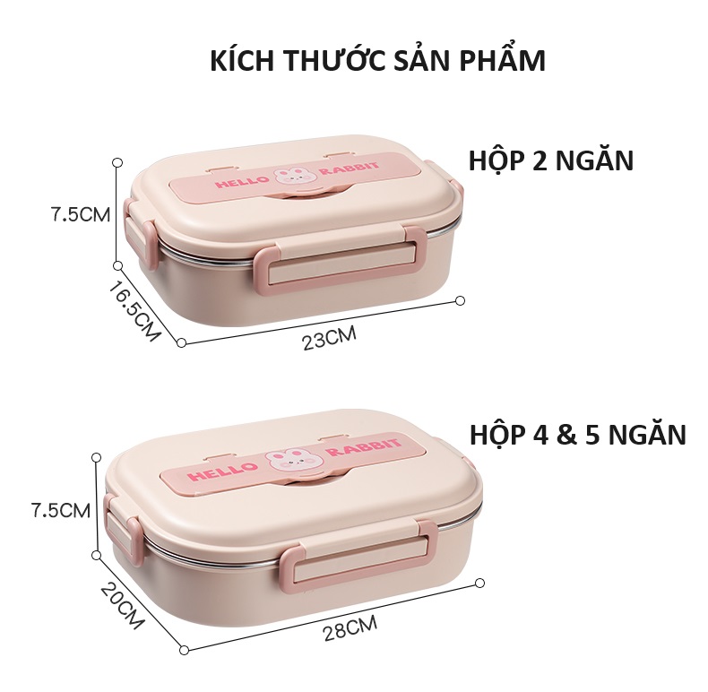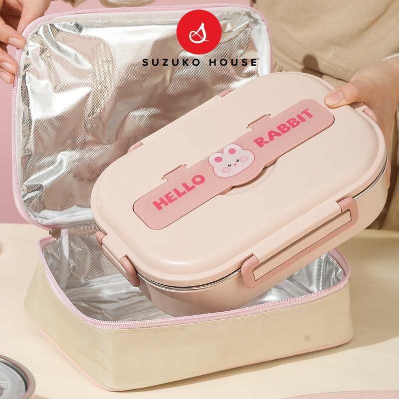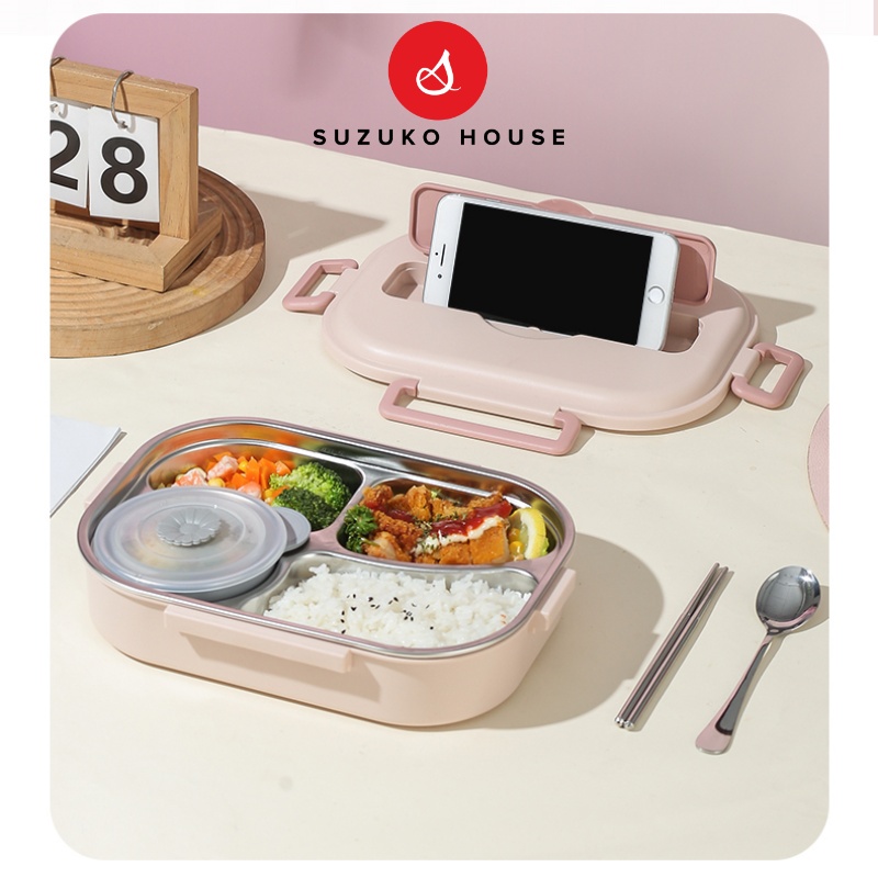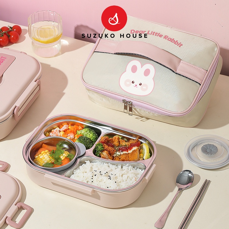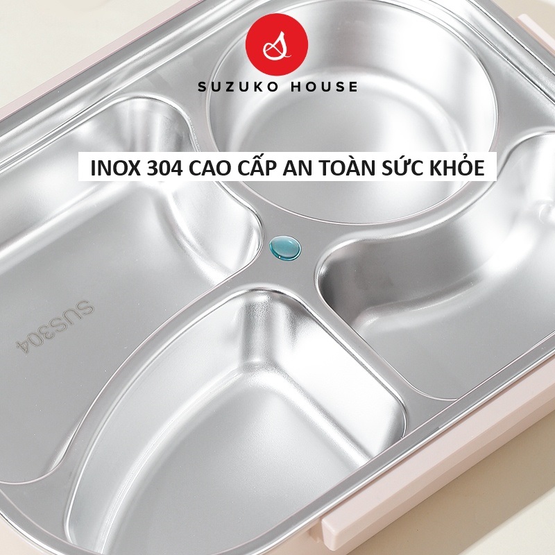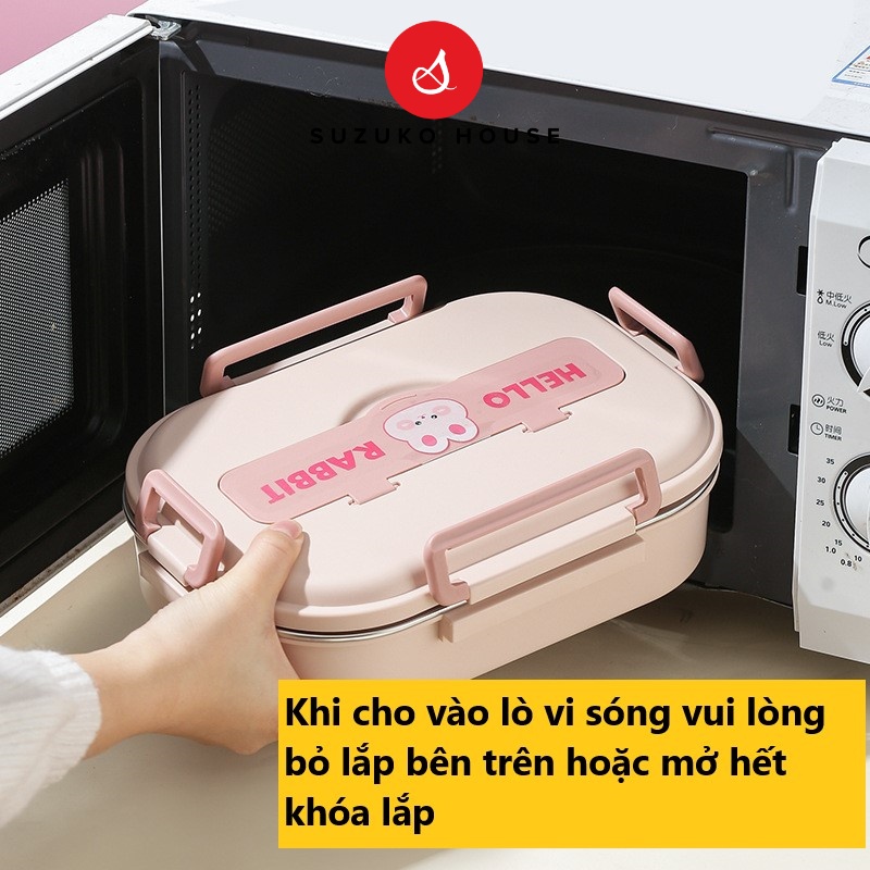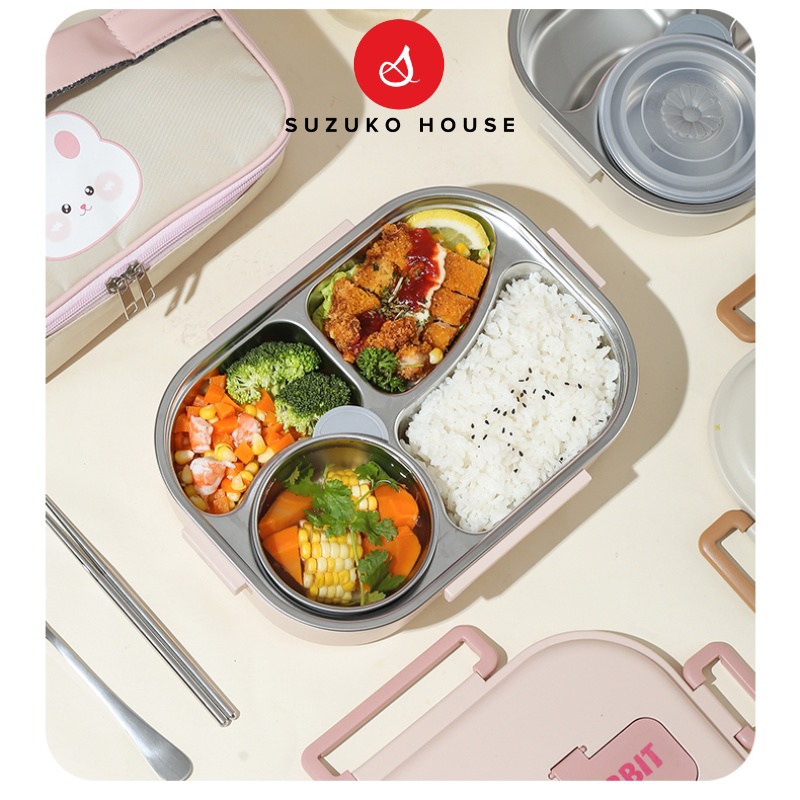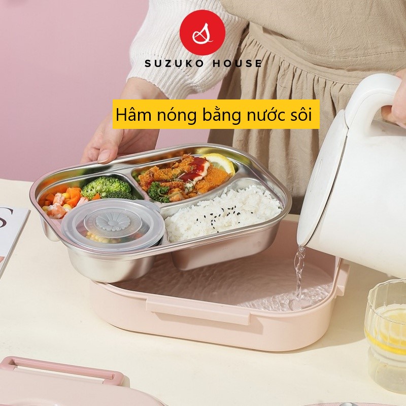 Hộp đựng cơm cute SUZUKO HOUSE, hộp đựng cơm văn phòng inox 304 giữ nhiệt đồ hâm nóng lò vi sóng chia 2, 4, 5 ngăn HC01