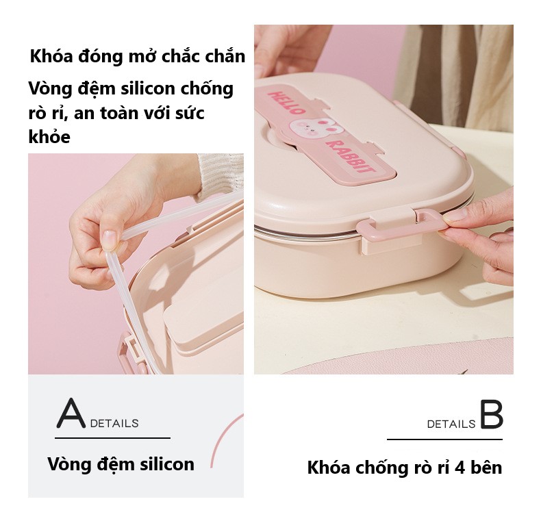 - Hộp cơm Hello Rabbit được làm bằng thép không gỉ 304 tốt cho sức khỏe, chịu được nhiệt độ cao và ăn mòn