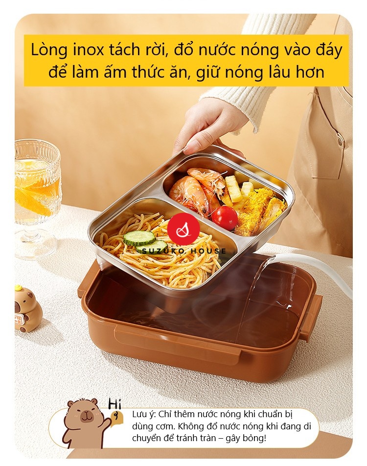 5. **Chức năng giữ nhiệt tuyệt vời:** Với đáy hộp thiết kế đặc biệt, bạn có thể thêm nước nóng để giữ cho đồ ăn luôn nóng hổi. Đây là tính năng cực kỳ hữu ích cho những ai không có thời gian để hâm lại cơm.