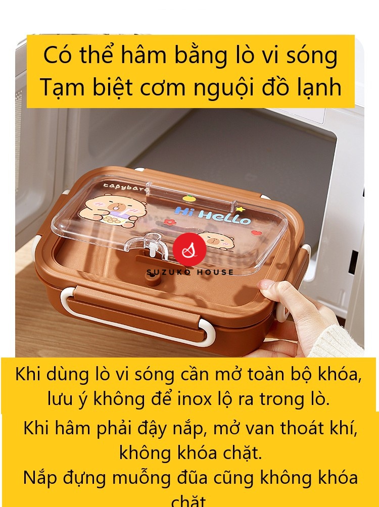 4. **Dễ dàng sử dụng trong lò vi sóng:** Hộp cơm Inox 316 có thể được sử dụng trong lò vi sóng, chỉ cần mở nắp hoàn toàn và sử dụng các bộ phận nhựa bên ngoài để hâm nóng thức ăn một cách an toàn.
