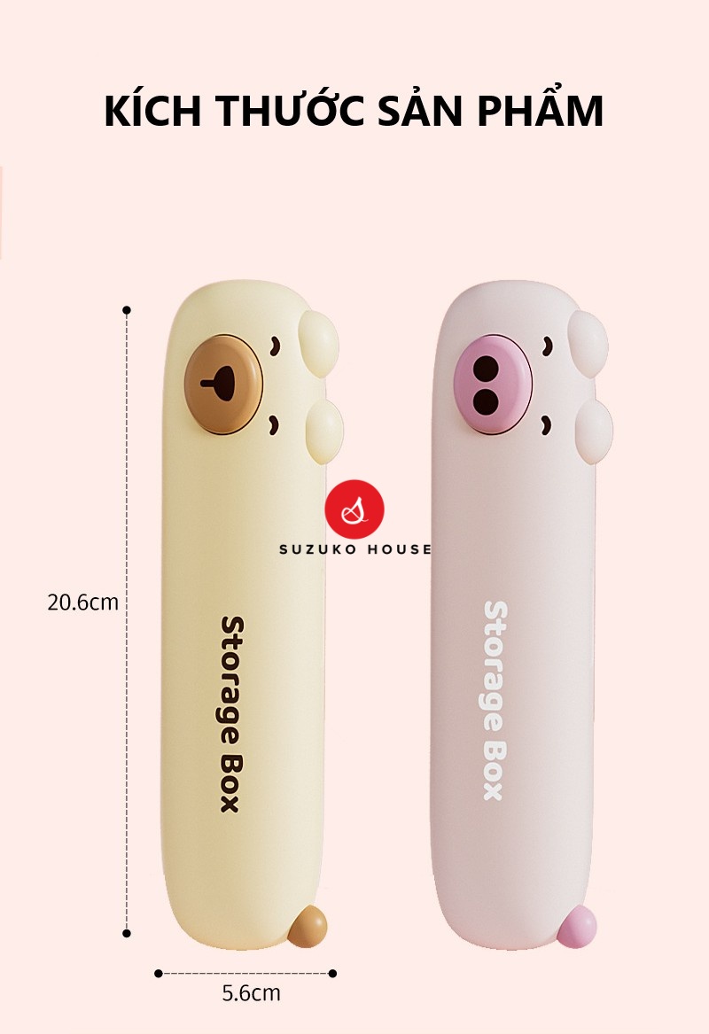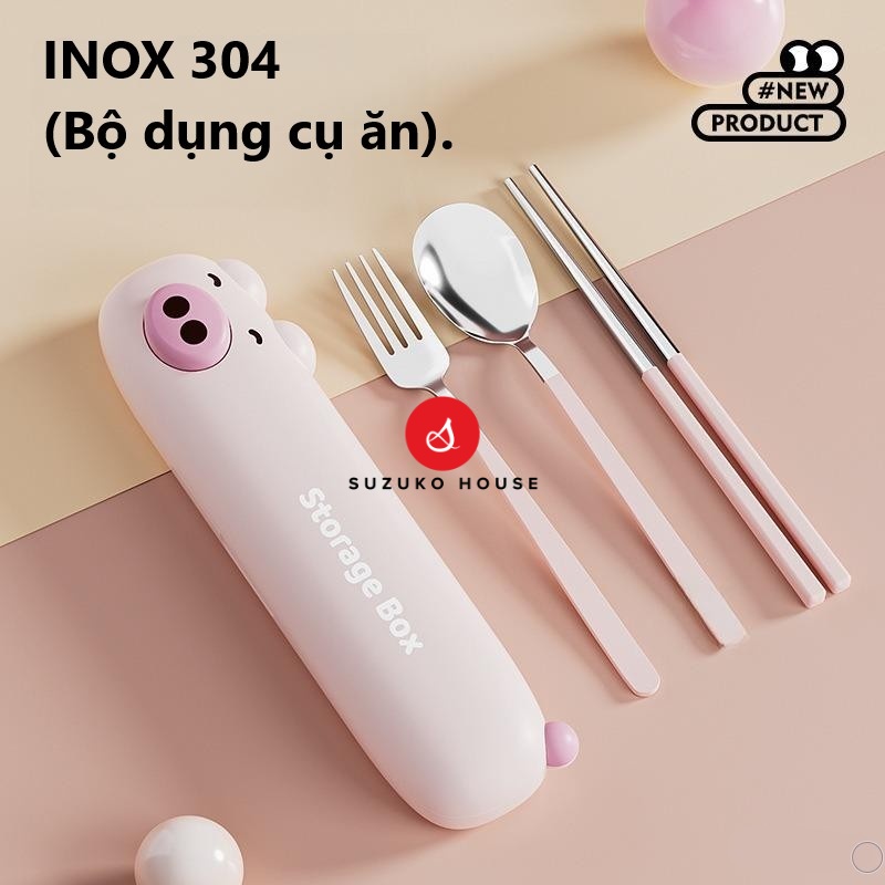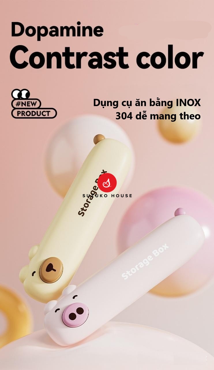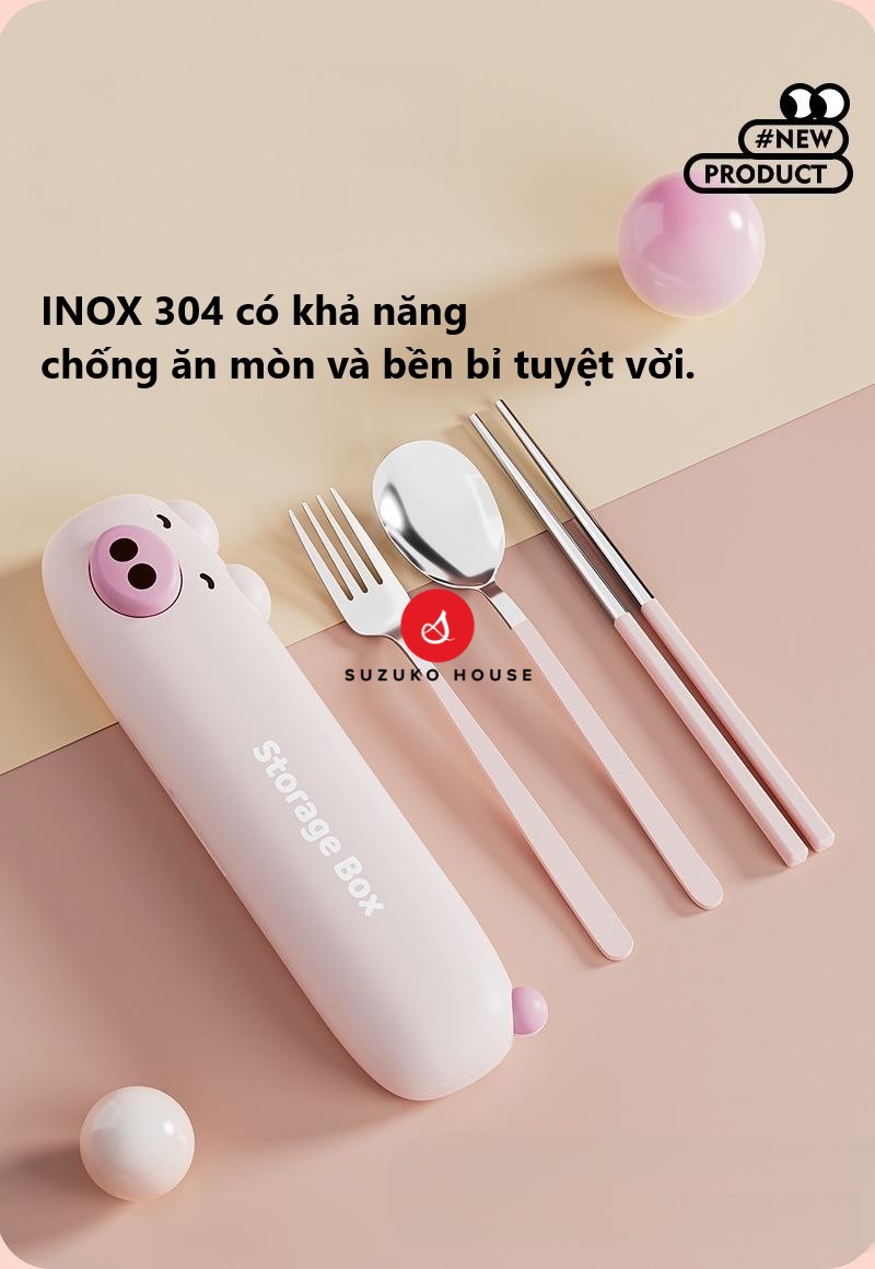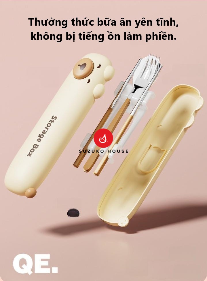 Set thìa muỗng nĩa Bear dễ thương, Hộp giữ đũa mini inox 304 SUZUKO HOUSE mang đi học sinh, người đi làm văn phòng TM25