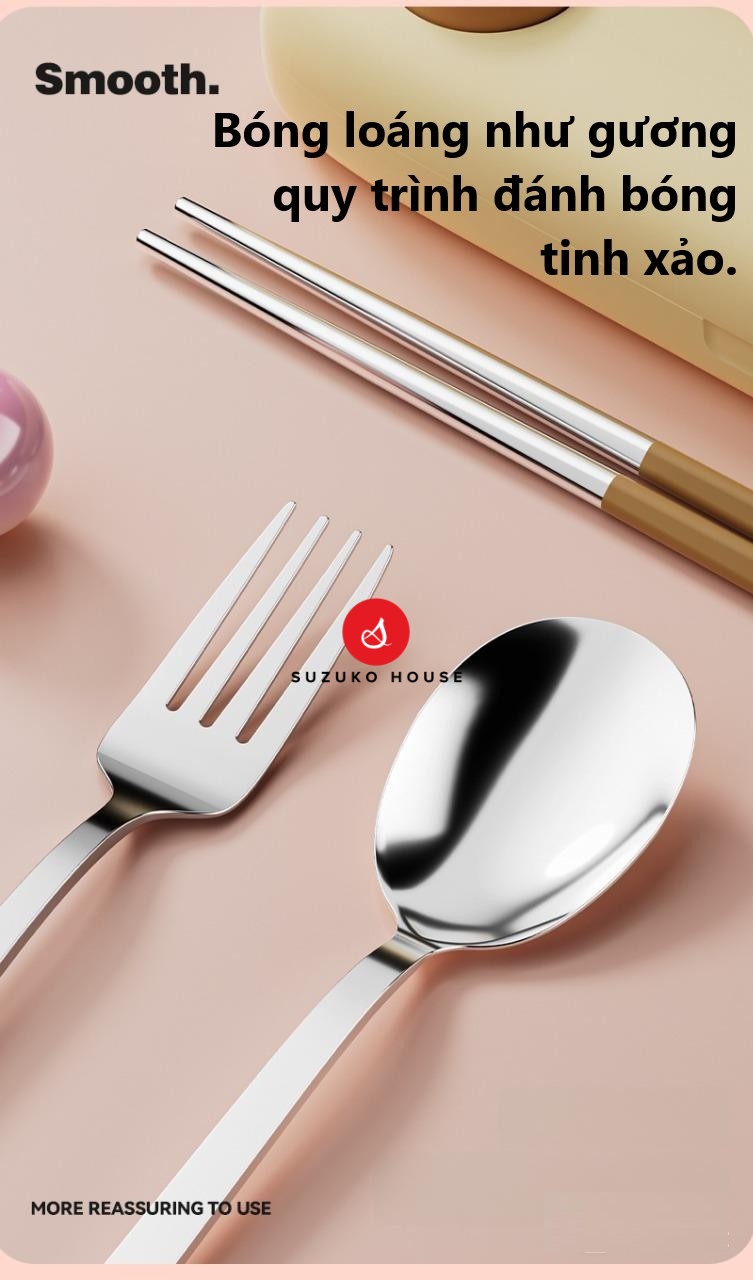 - **Nội dung bộ sản phẩm:** Bao gồm 1 thìa, 1 đũa và 1 nĩa (tùy chọn)