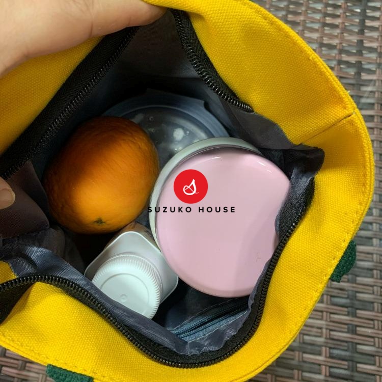 Túi đựng hộp cơm đi chơi – Ngoài công dụng đựng bình nước, túi còn có thể dùng như một giỏ đựng hộp cơm tiện lợi. Bạn có thể mang theo hộp cơm văn phòng, đồ ăn trưa hoặc trái cây, sữa chua khi đi chơi, đi cafe hay picnic. Túi đựng hộp cơm đi chơi có khả năng chống thấm và giữ nhiệt ổn định trong vài giờ.