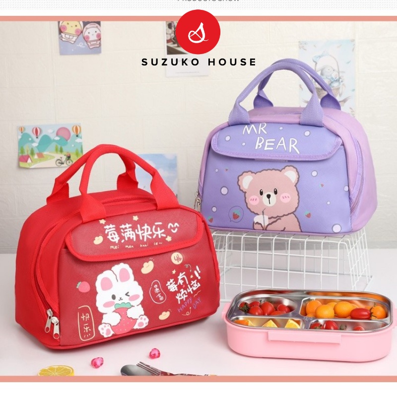 Túi đựng cơm giữ nhiệt dày 4 lớp cỡ lớn có ngăn đựng đa năng, SUZUKO HOUSE Túi đựng cơm văn phòng chống thấm nước TCHH10