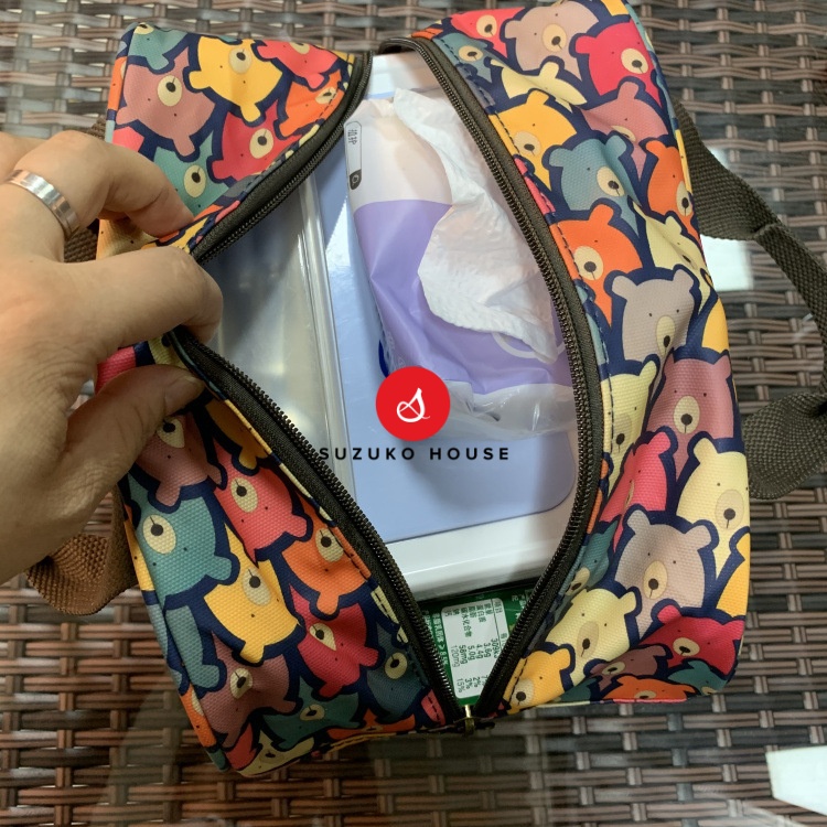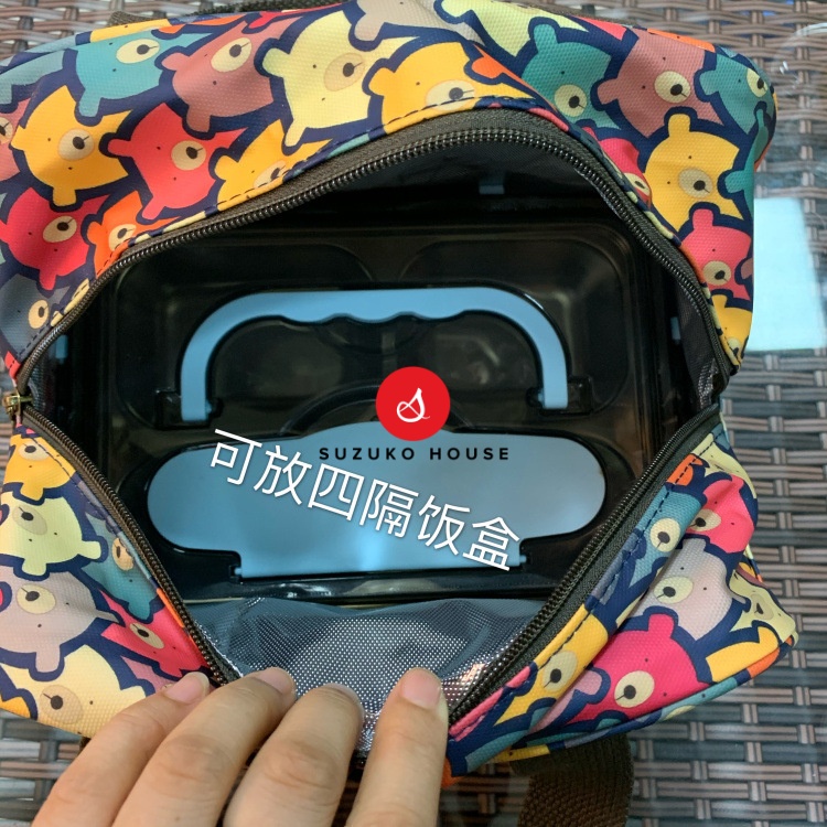 Túi đựng đồ ăn, hộp cơm SUZUKO HOUSE lót bạc dày cao cấp, túi mang cơm đi làm văn phòng chống nước họa tiết đẹp dễ thương khóa kéo bằng đồng có ngăn phụ đựng được nhiều đồ cá nhân tiện lợi