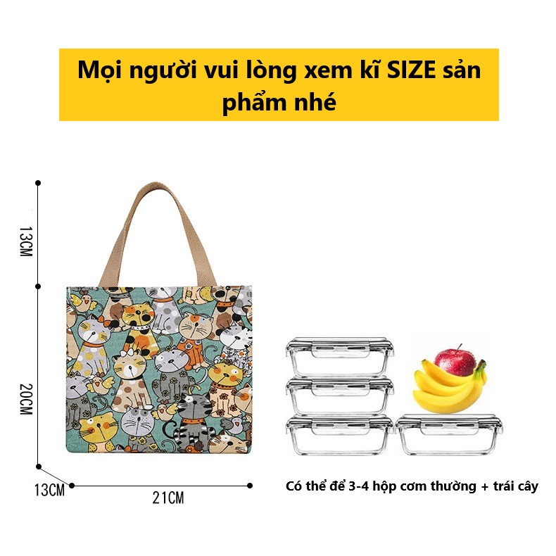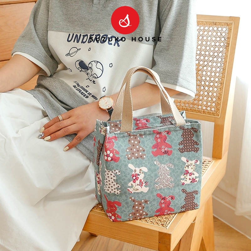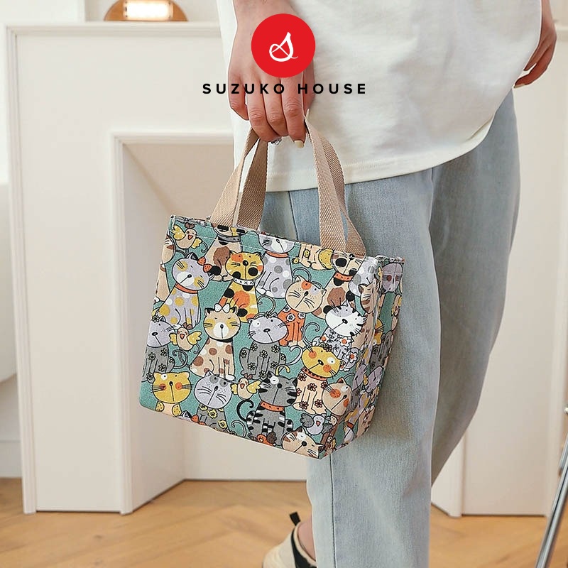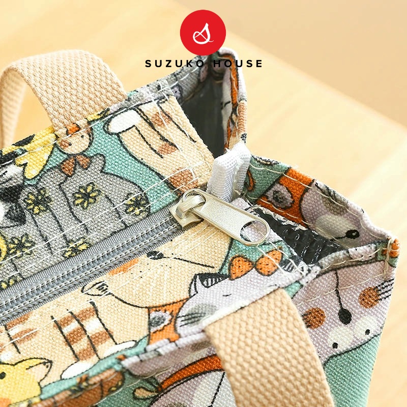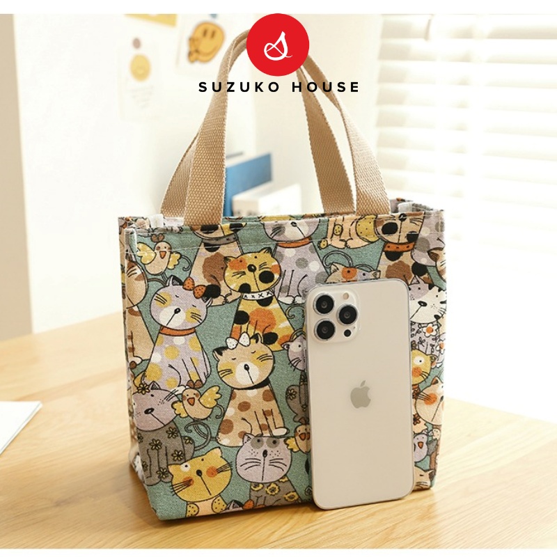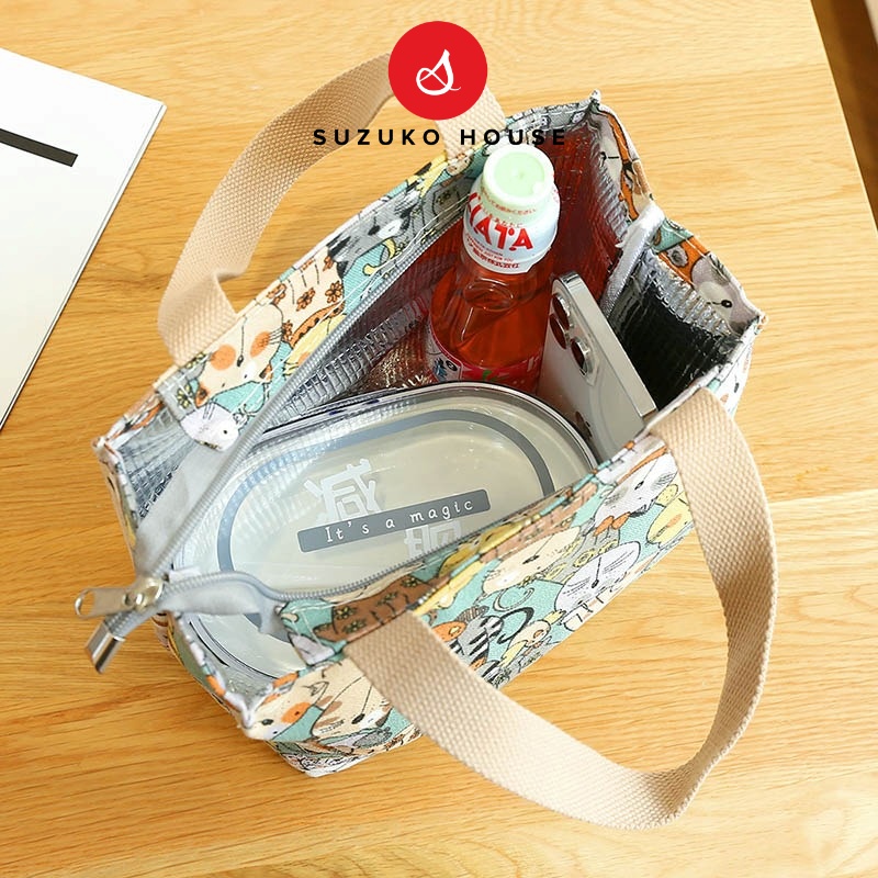 Túi đựng hộp cơm, SUZUKO HOUSE vải Canvas lót bạc dày chống thấm nước giữ nhiệt đựng cơm trưa đồ ăn đi làm văn phòng TV1