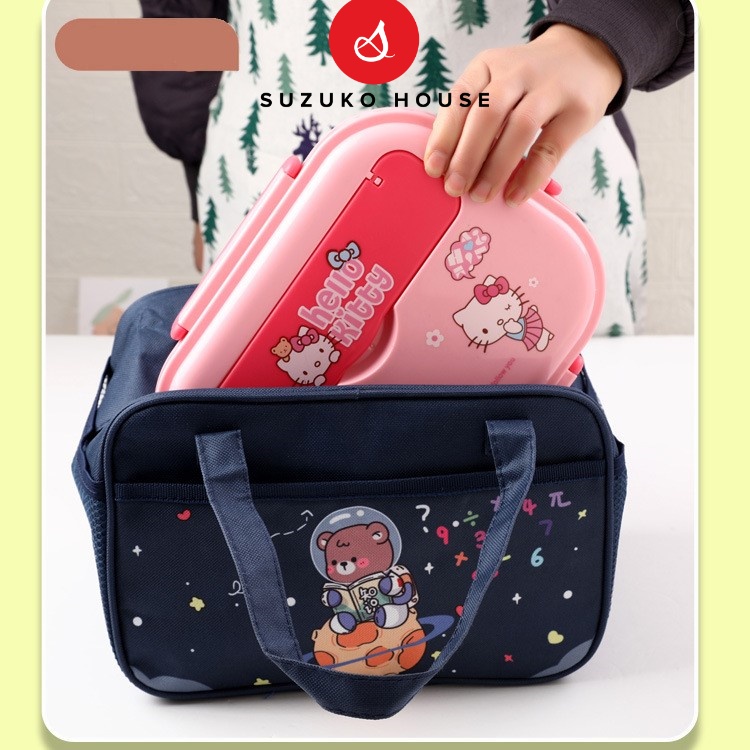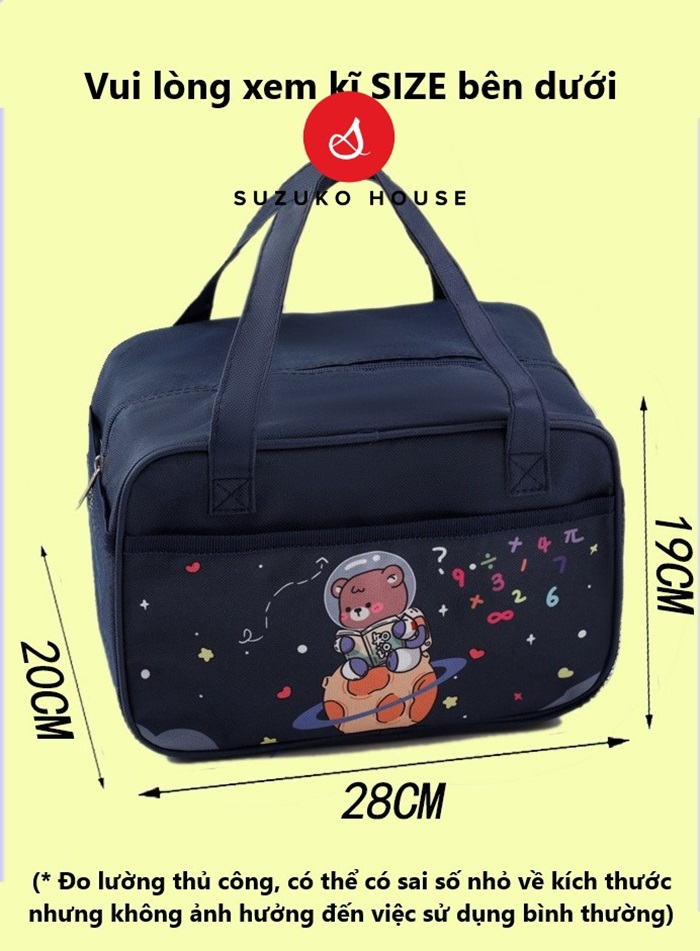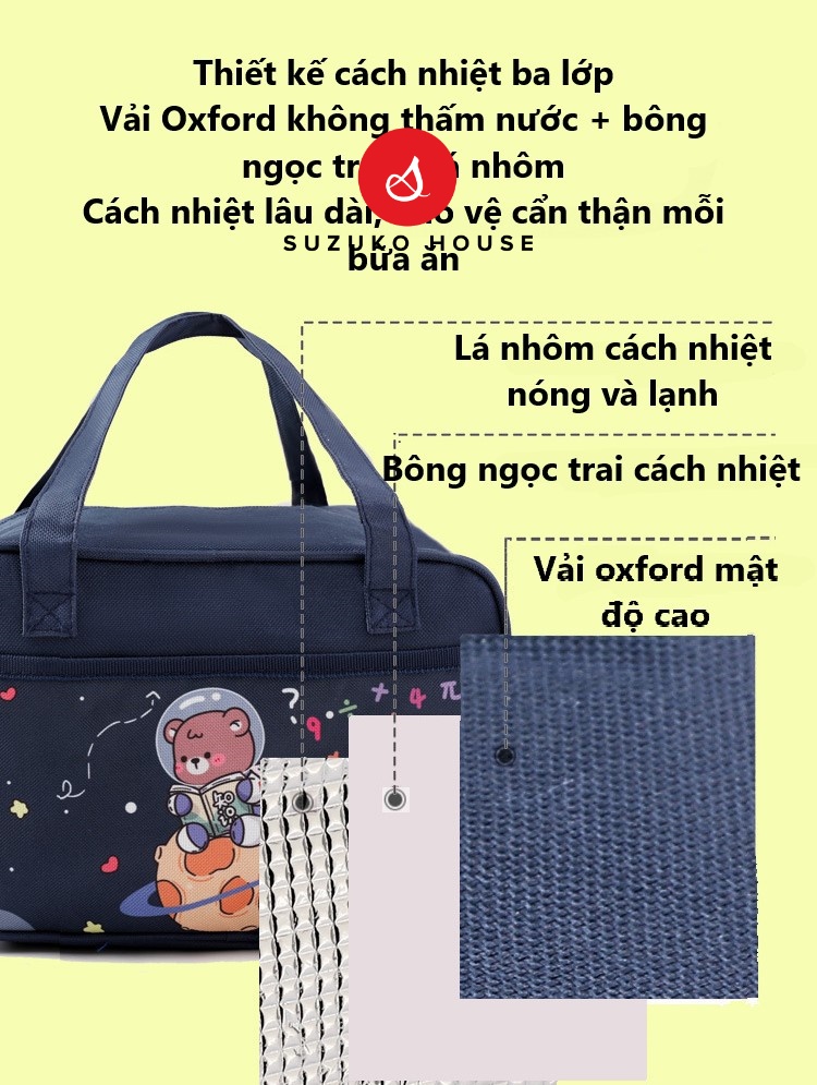 Túi đựng hộp cơm văn phòng size lớn, SUZUKO HOUSE túi giữ nhiệt đựng cơm lót bạc vải chống thấm nước dễ thương TXCT01