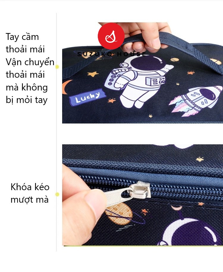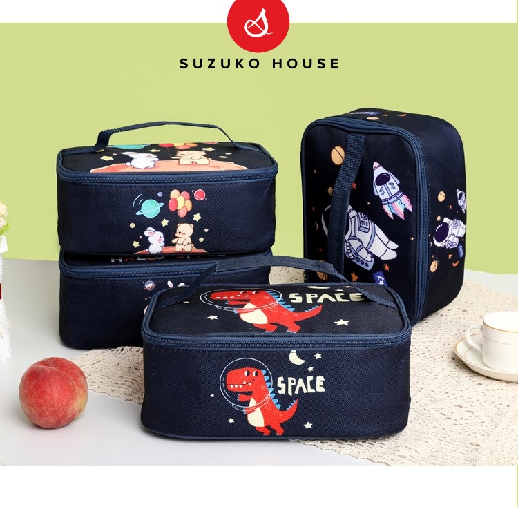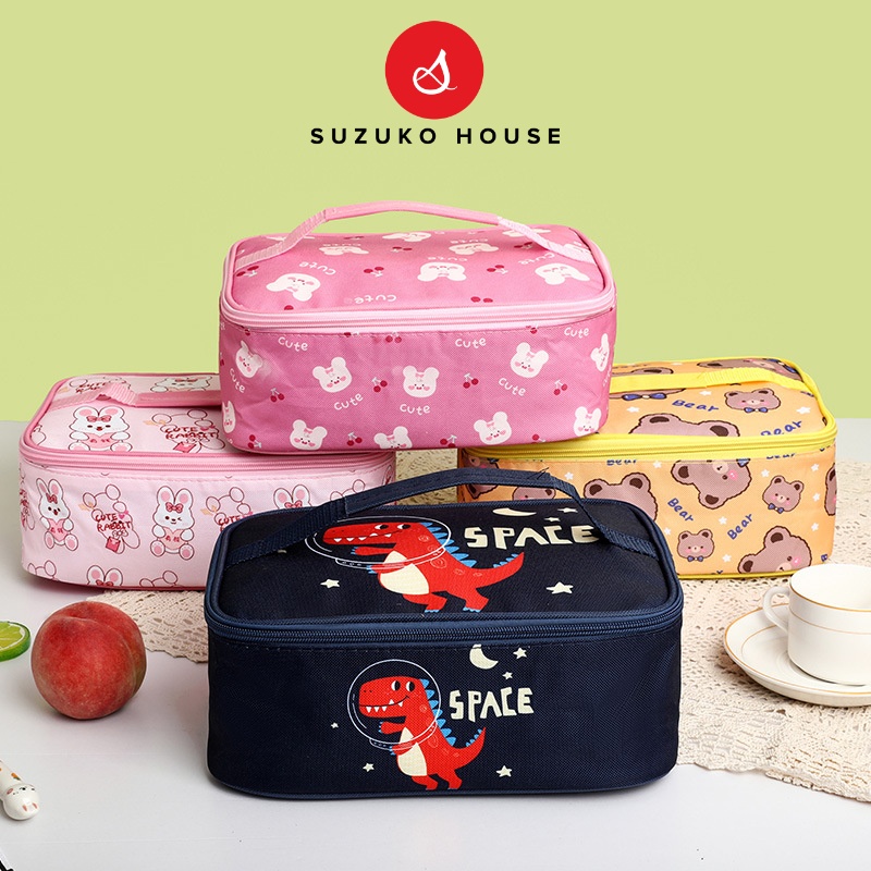 Túi mang cơm chữ nhật SUZUKO HOUSE, túi xách đựng hộp cơm Rabbit Dear Bear size to lớn vải chống nước mang cơm TGN02