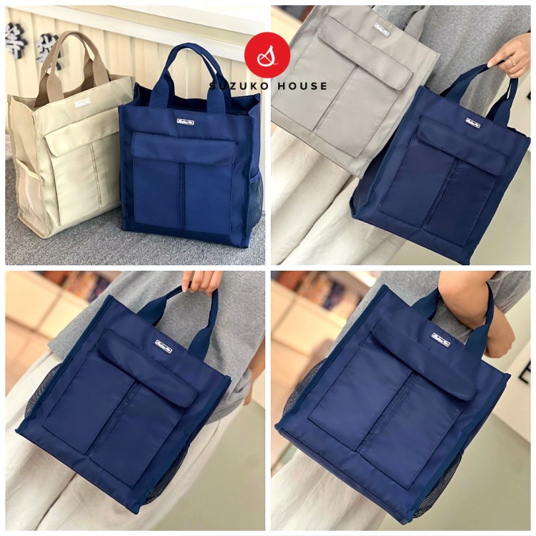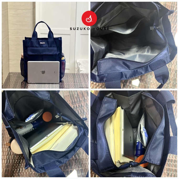 Túi vải chống thấm nước cỡ lớn A4 SUZUKO HOUSE, Túi xách nhiều ngăn khóa kéo để nhiều đồ cầm tay văn phòng TX04