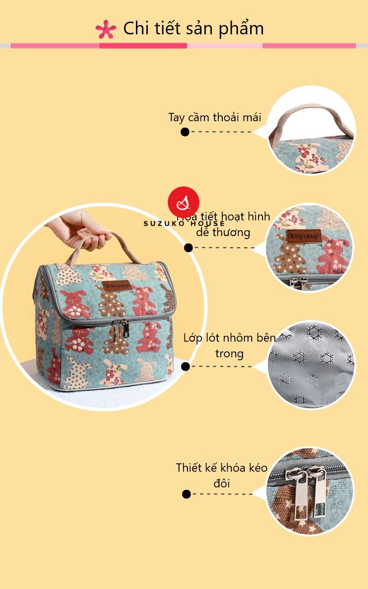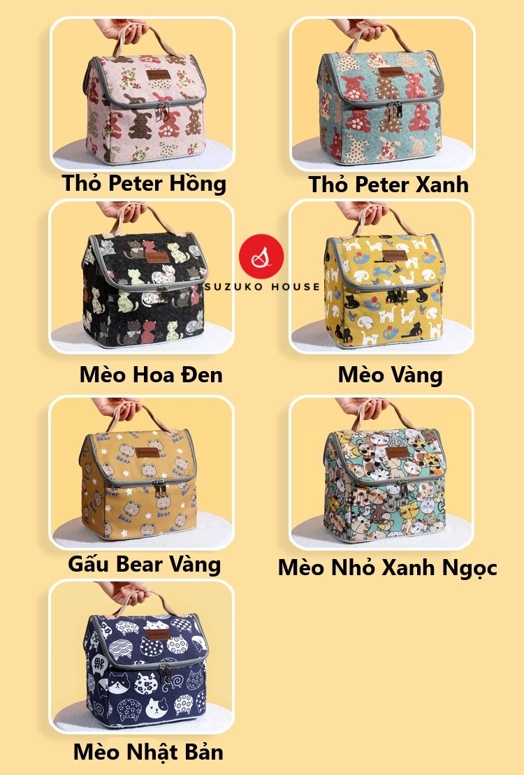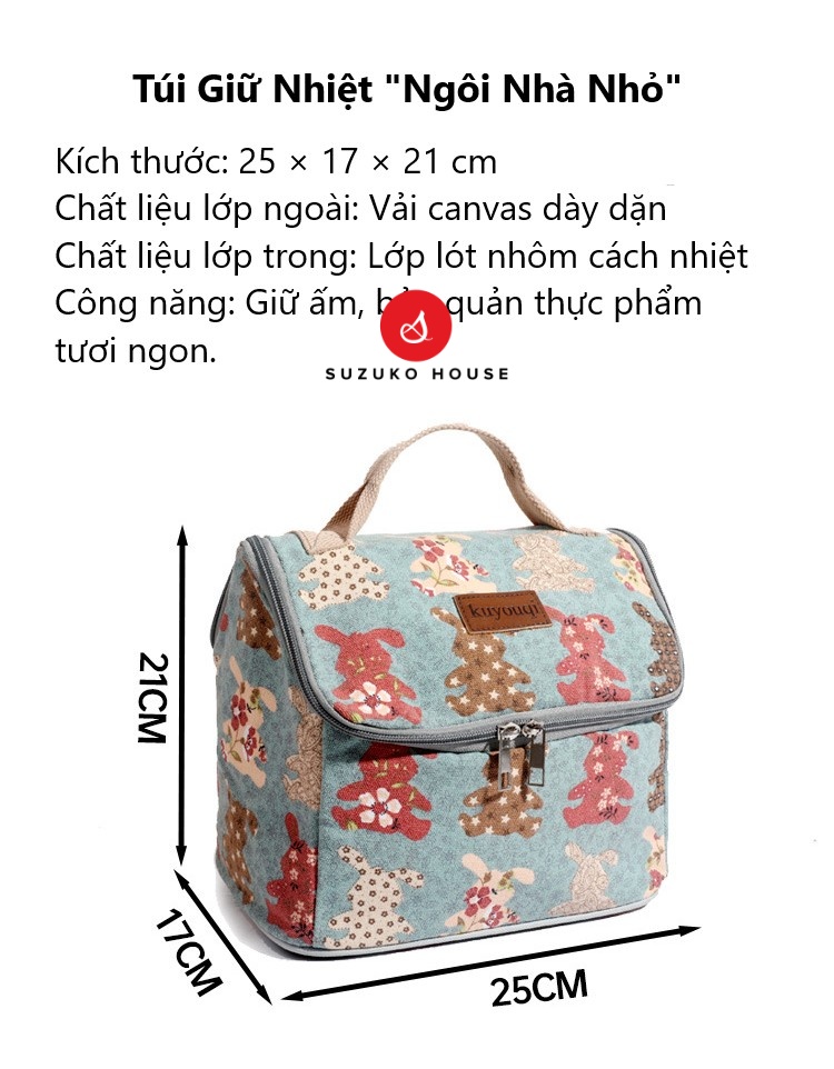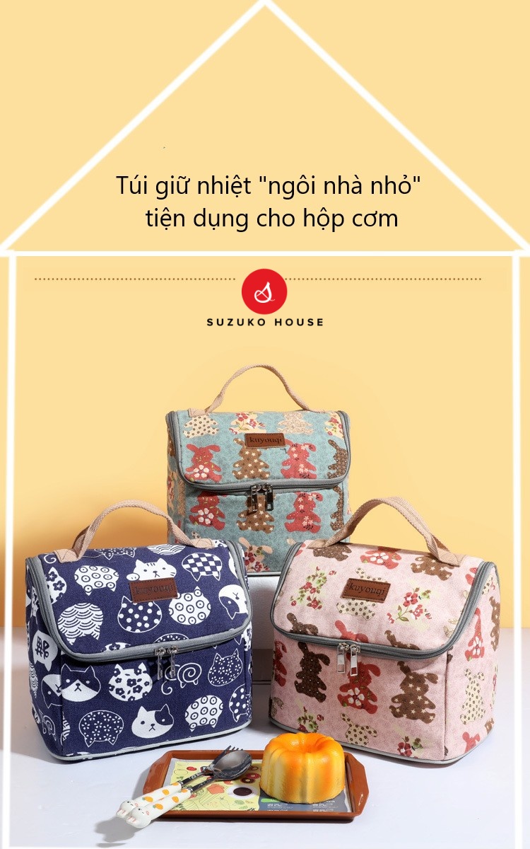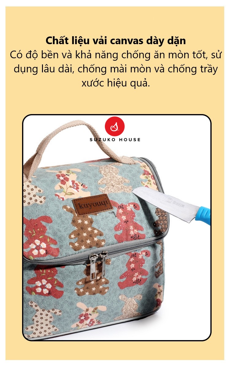 Túi xách đựng hộp cơm văn phòng SUZUKO HOUSE, Túi đựng cơm vải Canvas chống thấm nước đi làm, du lịch TC41