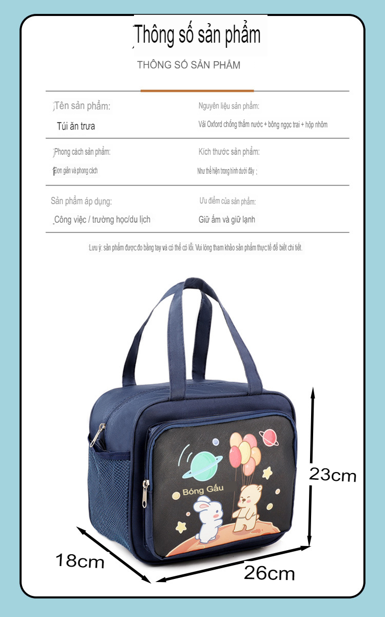 Khả năng giữ nhiệt vượt trội: Với lớp lót bạc dày dặn, túi giữ nhiệt tốt, giúp thức ăn của bạn luôn ở nhiệt độ lý tưởng khi mang đi làm.