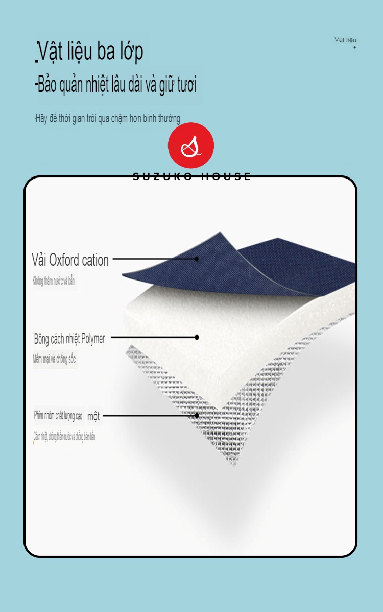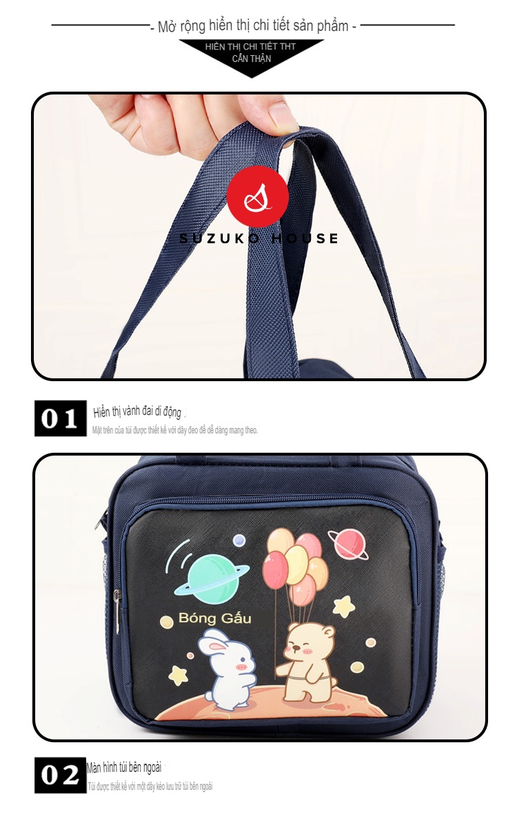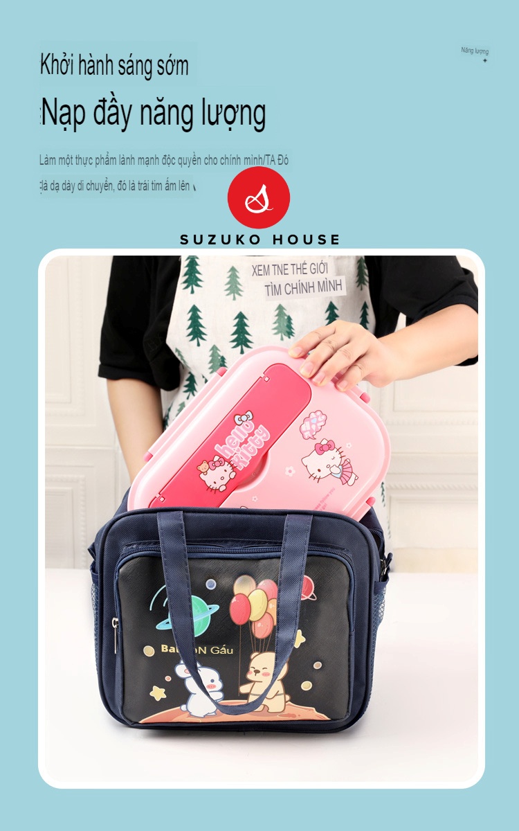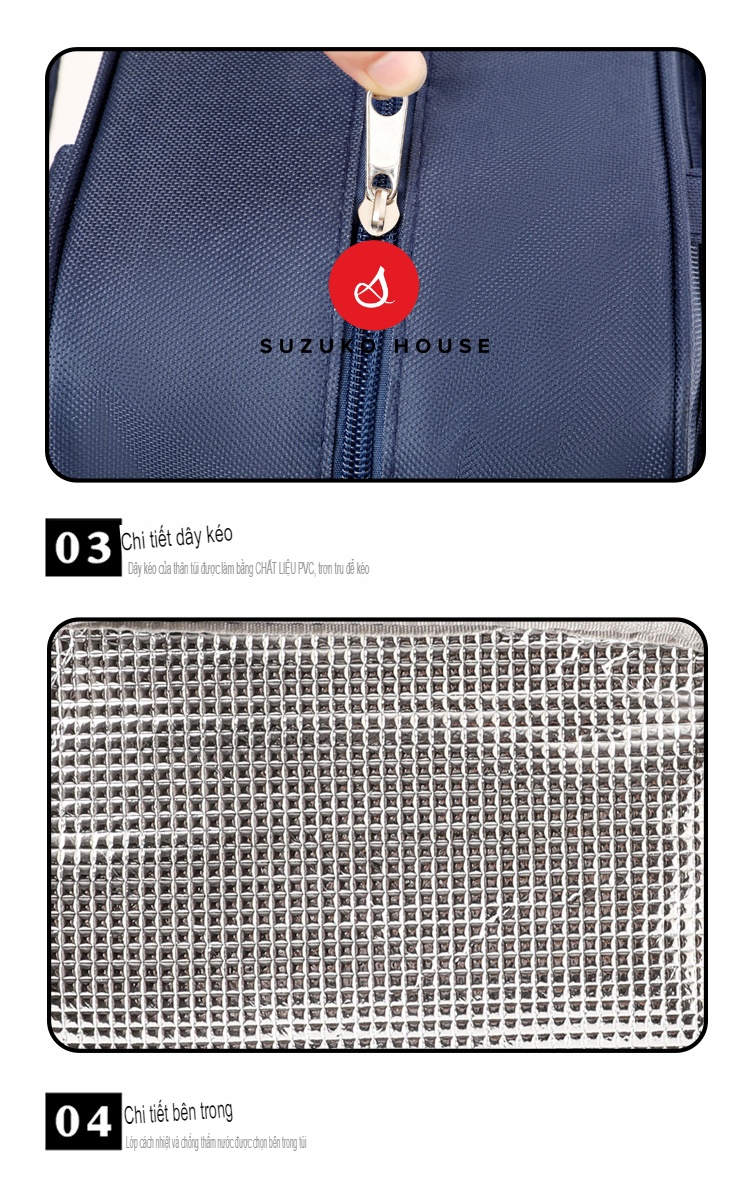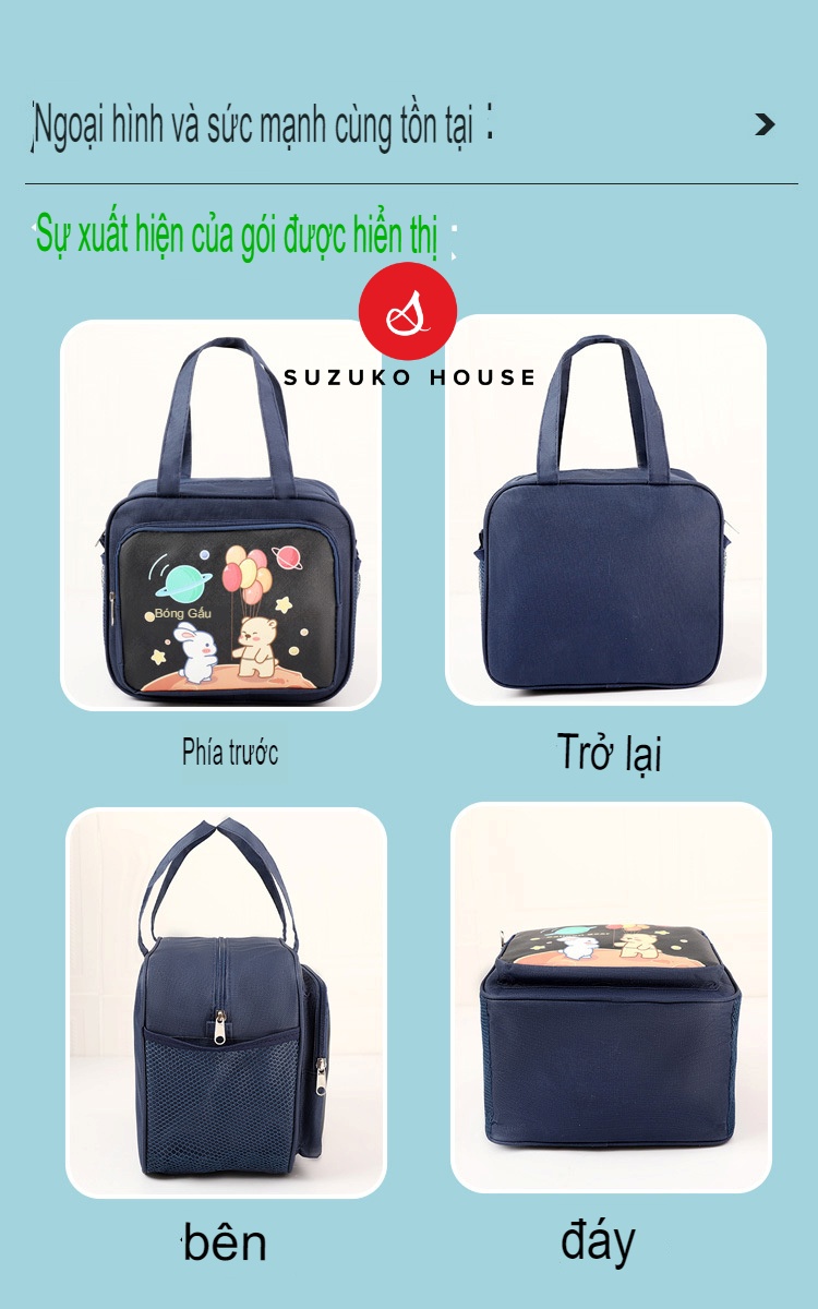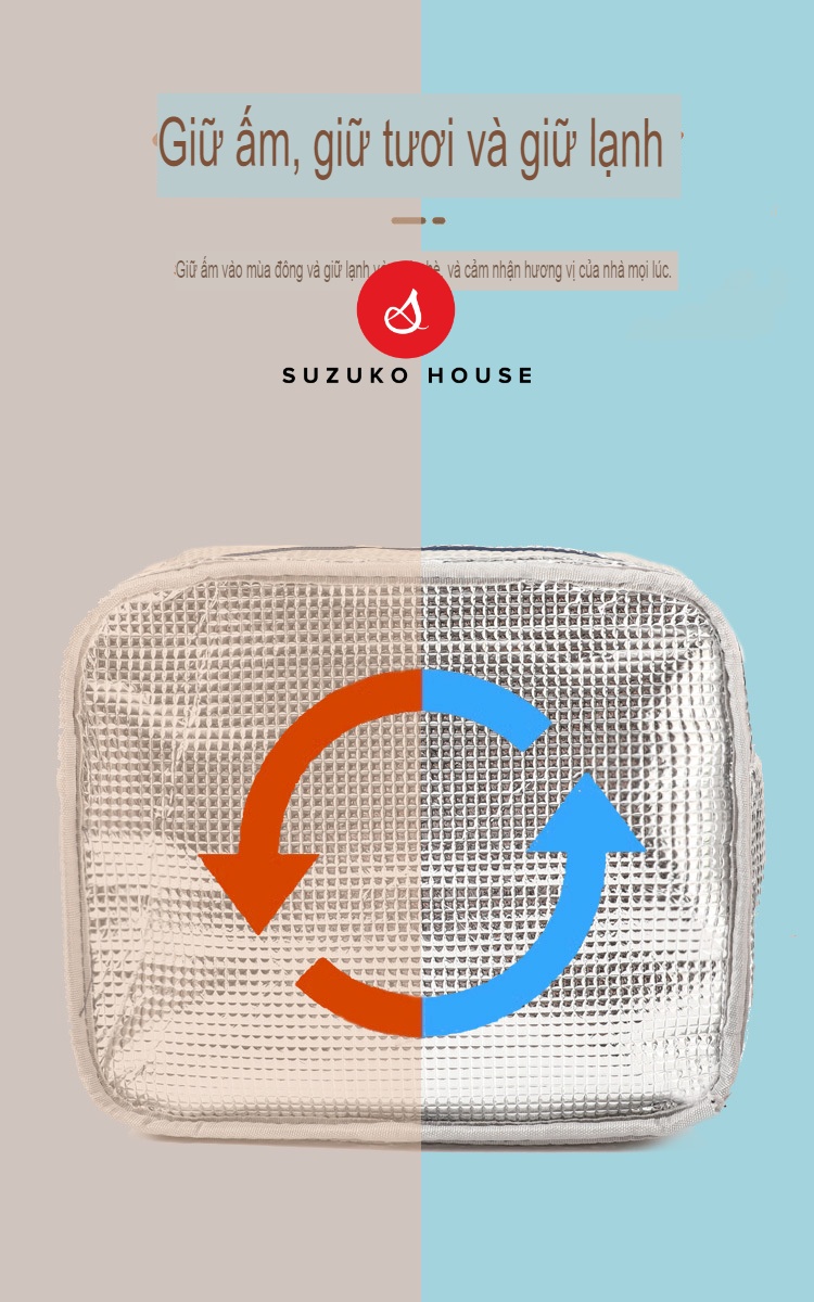 Túi xách hộp cơm trưa SUZUKO HOUSE, Túi đựng cơm lót bạc dày cute dễ thương đẹp giữ nhiệt đồ ăn văn phòng TC24